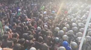 Momen tersebut terjadi pada sore hari ketika terlihat massa mulai mencoba untuk maju dan aparat mendorong untuk menjaga barisannya.